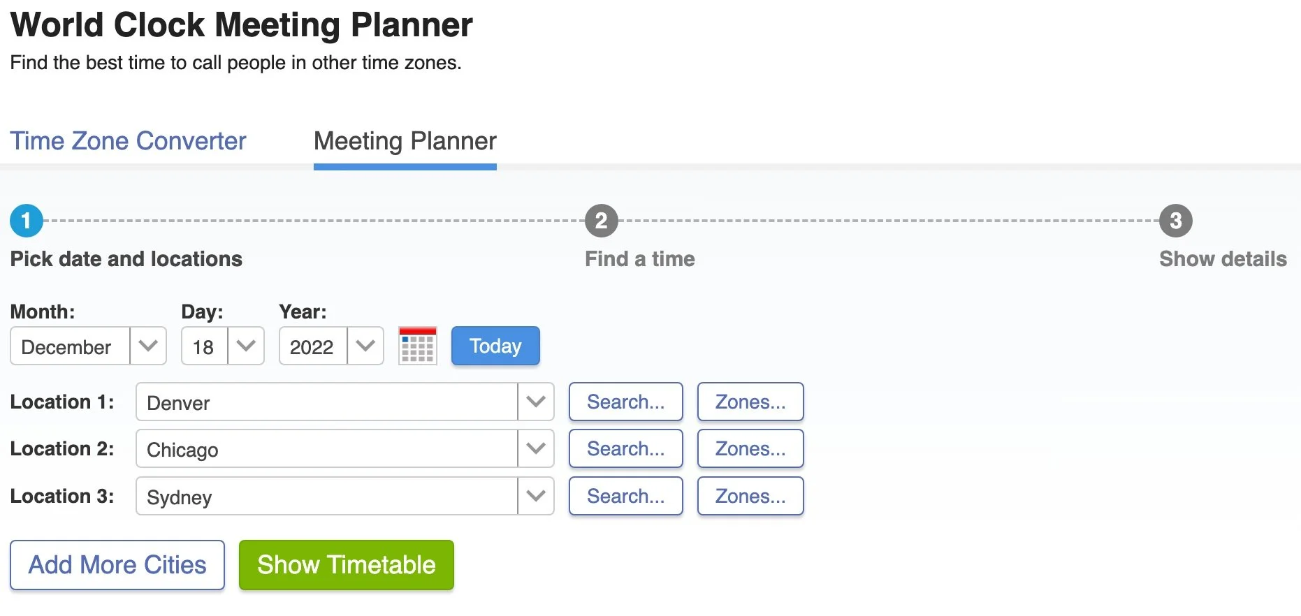 There are a ton of world time zone meeting planners like this one out there, I bookmark one that’s familiar to me now.